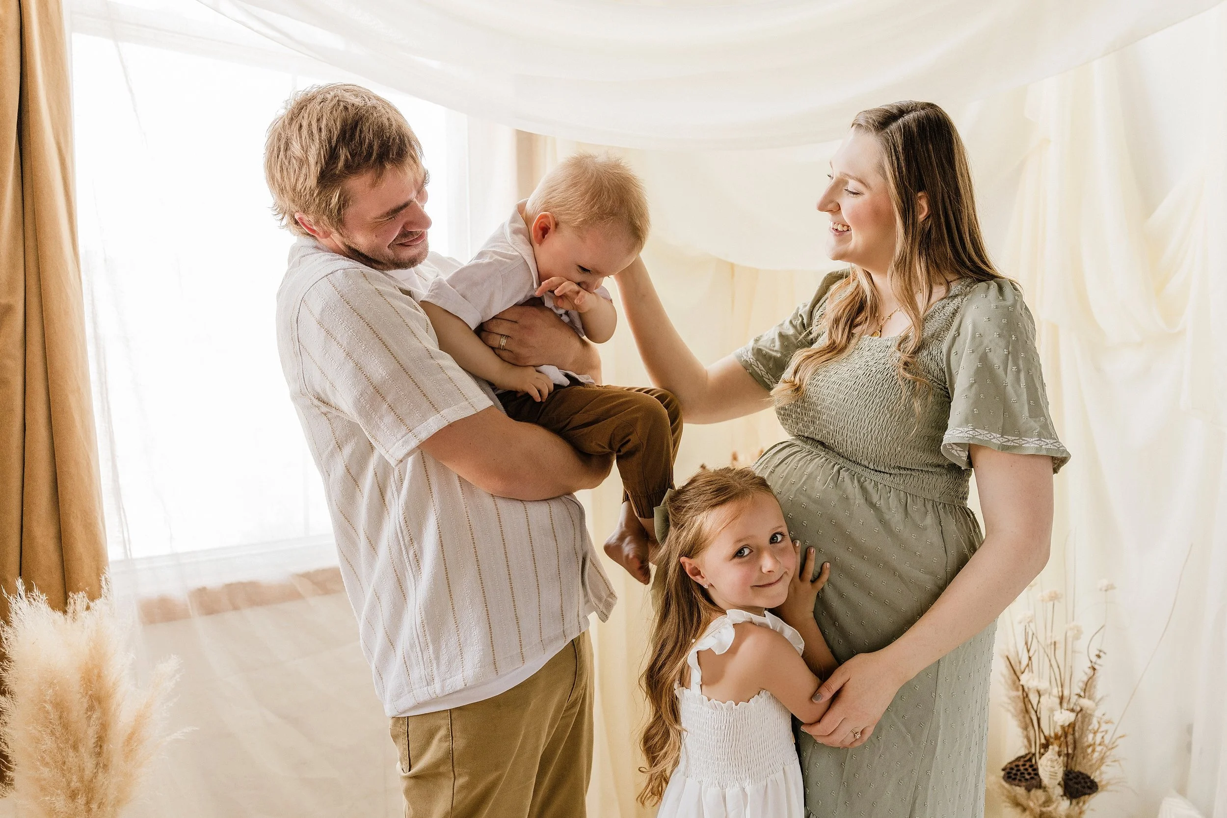 In studio sessions show a touch of stunning glamour or a more casual day wear to embrace the glow and drama of your pregnancy. You may also wish to have both options - and we can make that happen momma.
